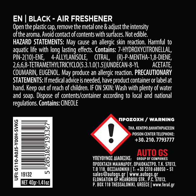 Αρωματικό Αυτοκινήτου Κονσέρβα Feral Με Άρωμα Black 40gr 1 Τεμάχιο