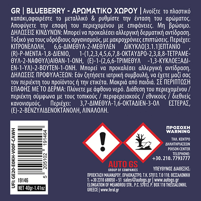 Αρωματικό Αυτοκινήτου Κονσέρβα Feral Με Άρωμα Blueberry 40gr 1 Τεμάχιο