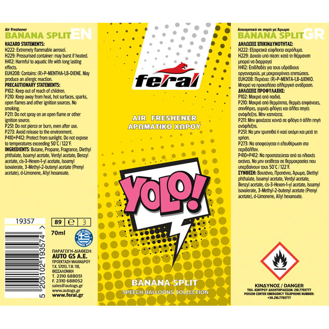 Αρωματικό Αυτοκινήτου Spray Feral Speech Collection YOLO 1 Τεμάχιο