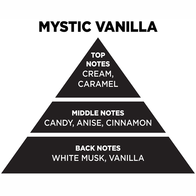 Η αρωματική του σύνθεση αποτελείται από γλυκές νότες βανίλιας, κρέμα καραμέλας, κανέλας και ελαφρύ τόνου white musk.