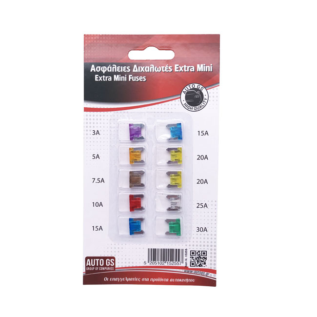 Ασφάλειες Αυτοκινήτου Διχαλωτές Extra Mini Σε Καρτέλα Σετ 10 Τεμάχια