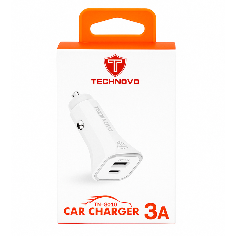 Φορτιστής Αναπτήρα Αυτοκινήτου Technovo TN-B010 Με 1 Θύρα USB Και 1 Θύρα USB-C 12-24V 3A Λευκός 1 Τεμάχιο