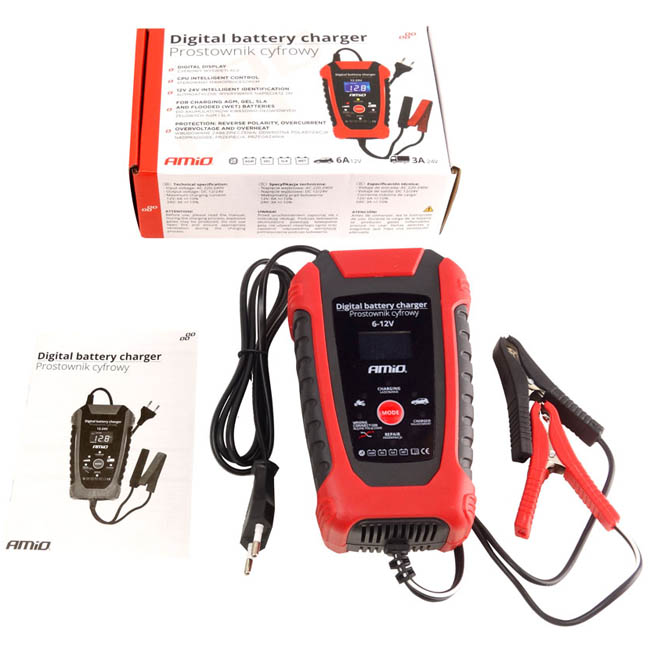 Φορτιστής Μπαταριών Αυτοκινήτου & Μοτο Ψηφιακός Amio (02403) 6V 2Amp / 12V 6Amp 1 Τεμάχιο