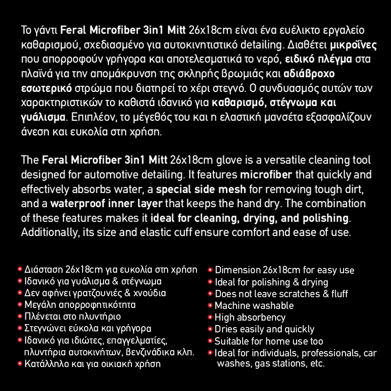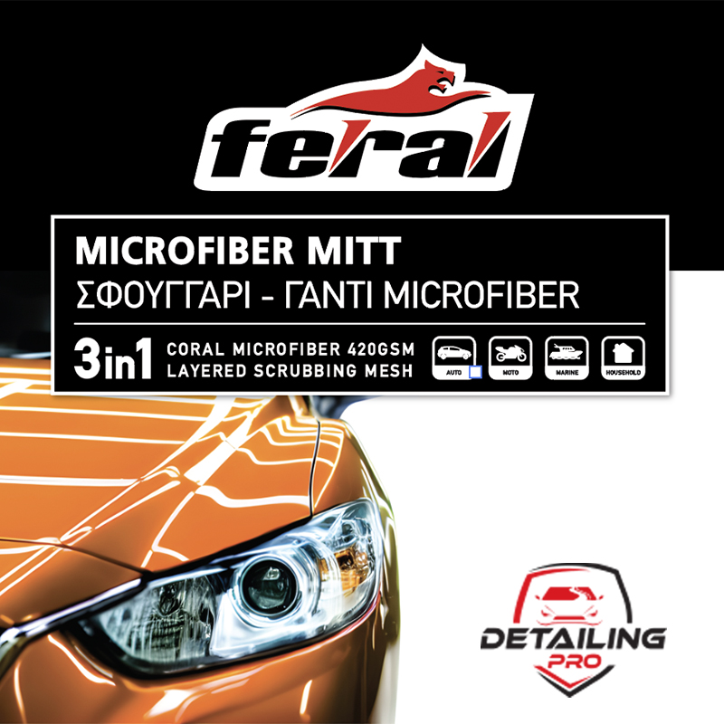 Γάντι Ειδικό Για Πλύσιμο Αυτοκινήτου Και Καθαρισμό Microfiber Mitt 3 Σε 1 26x18cm Feral Detailing Pro
