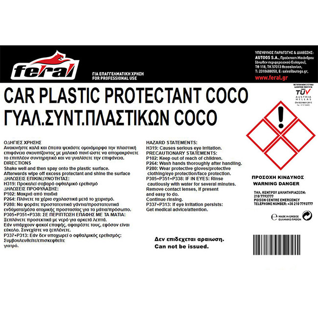 Γυαλιστικό Και Συντηρητικό Γαλάκτωμα Πλαστικών Coco Feral 4lt 1 Τεμάχιο