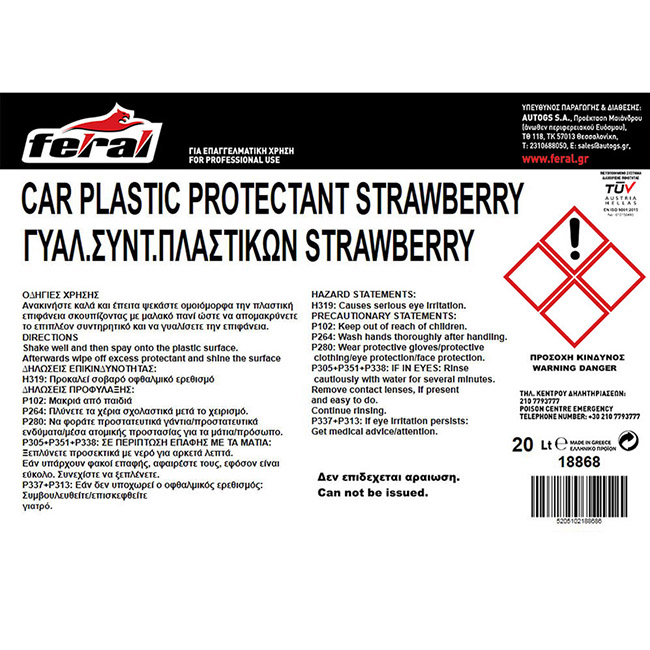 Γυαλιστικό Και Συντηρητικό Γαλάκτωμα Πλαστικών Strawberry Feral 20lt 1 Τεμάχιο