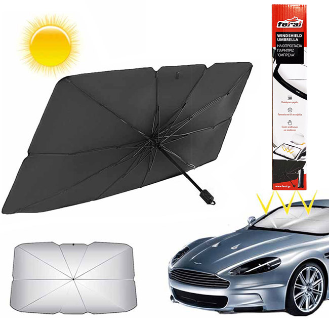 Ηλιοπροστασία Παρμπρίζ “Ομπρέλα” Με Χερούλι Feral Medium135x68x38cm 1 Τεμάχιο