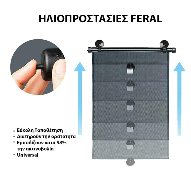 Ηλιοπροστασία Αυτοκινήτου Για Τα Πλαϊνά Τζάμια Ρολό Feral 40x45cm