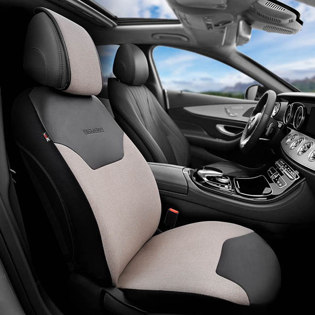 Ημικάλυμμα Αυτοκινήτου Otom “Exclusive” Από Λινό Ύφασμα Με Δερματίνη Μπεζ – Μαύρο EXLN-103 1 Τεμάχιο