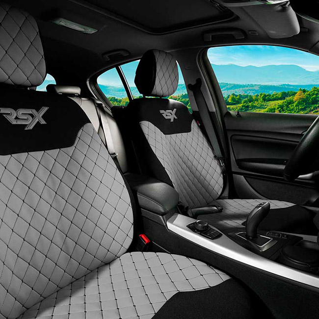 Ημικαλύμματα αυτοκινήτου για τα δύο μπροστινά καθίσματα RSX Sport από υψηλής ποιότητας ύφασμα κεντητό καπιτονέ.