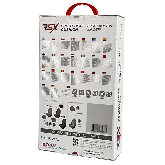 Ημικαλύμματα Καθισμάτων Αυτοκινήτου Otom RSX Sport Ύφασμα Κεντητό Καπιτονέ Γκρι Με Μαύρη Ραφή RSXL-103 2 Τεμάχια