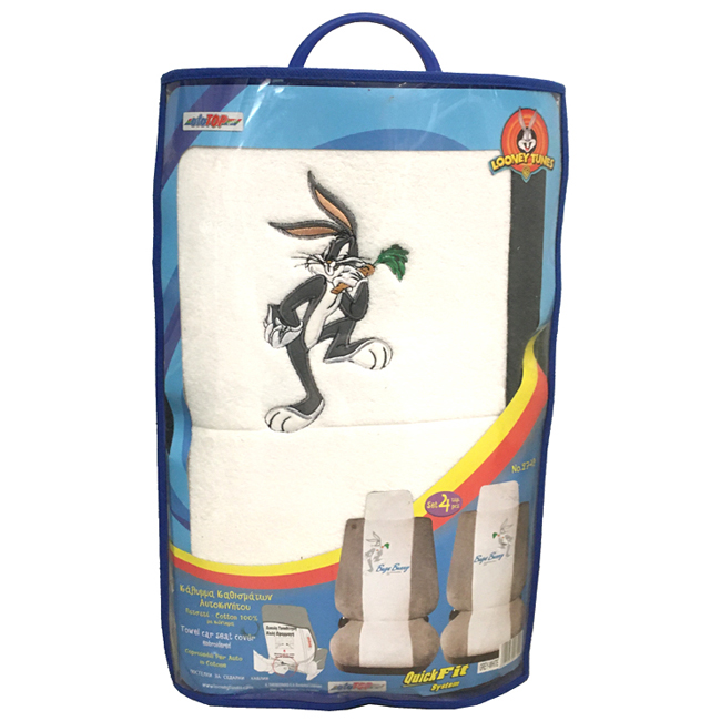 Ημικαλύμματα Καθισμάτων Αυτοκινήτου Πετσετέ Bugs Bunny Γκρι-Άσπρο Ζευ 4 Τεμάχια
