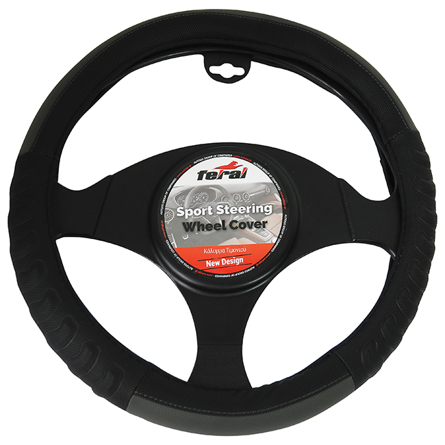 Κάλυμμα Τιμονιού Αυτοκινήτου Δερματίνη Ανάγλυφο Μαύρο-Γκρι Medium 38cm 1 Τεμάχιο
