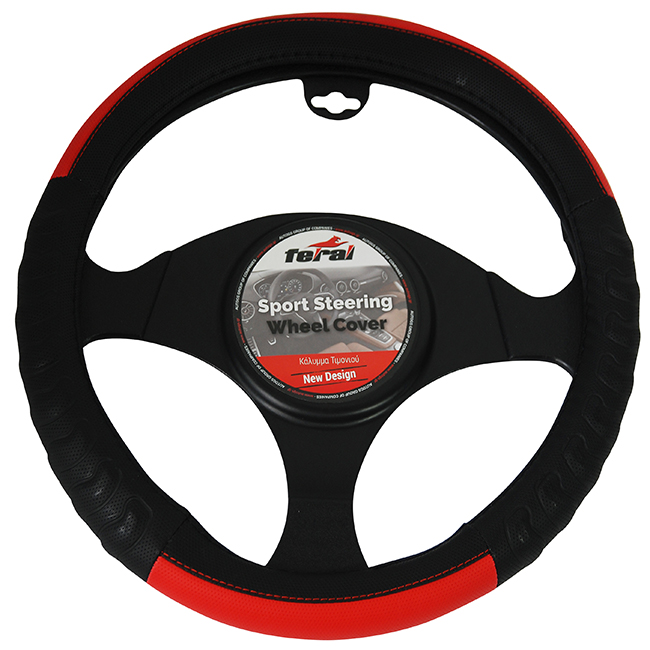 Κάλυμμα Τιμονιού Αυτοκινήτου Δερματίνη Ανάγλυφο Μαύρο-Κόκκινο Medium 38cm 1 Τεμάχιο