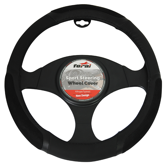 Κάλυμμα Τιμονιού Αυτοκινήτου Δερματίνη Δίχρωμο Μαύρο-Μαύρο Medium 38cm 1 Τεμάχιο