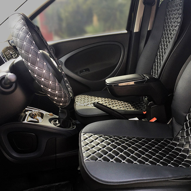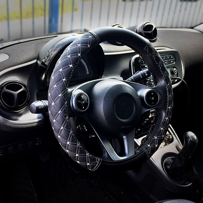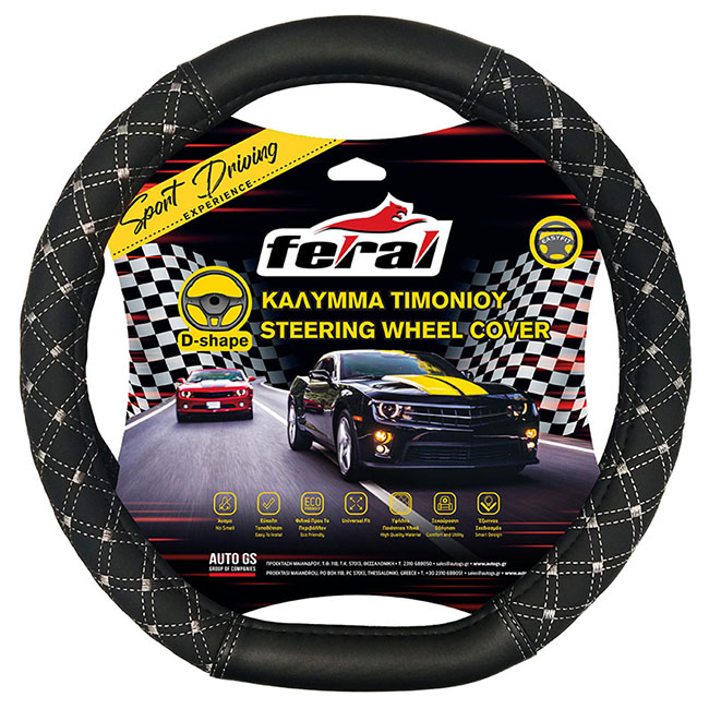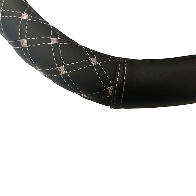 Κάλυμμα Τιμονιού Αυτοκινήτου Δερματίνη Elegant D Μαύρο Με Γκρι Ραφή Medium 38cm 1 Τεμάχιο