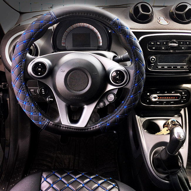 Κάλυμμα Τιμονιού Αυτοκινήτου Δερματίνη Elegant D Μαύρο Με Μπλε Ραφή Medium 38cm 1 Τεμάχιο