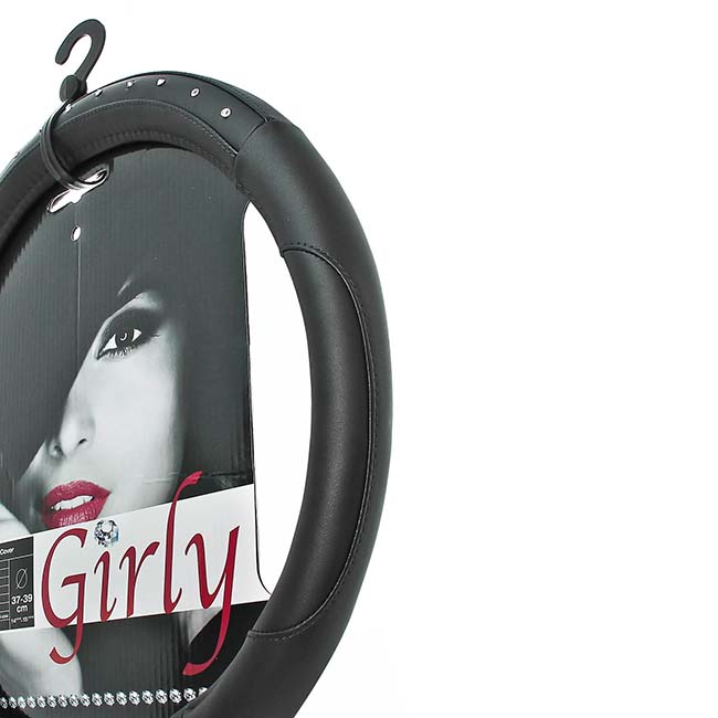 Κάλυμμα Tιμονιού Αυτοκινήτου Δερματίνη Girly Black Diamonds Μαύρο Με Στρας Medium 37-39cm 1 Τεμάχιο