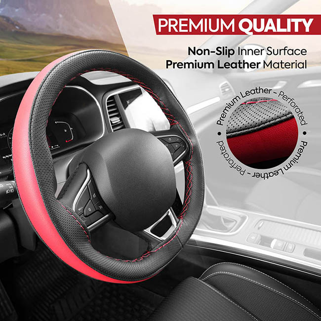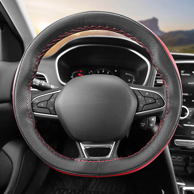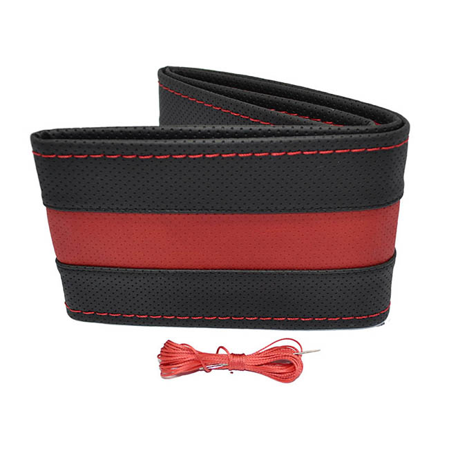 Κάλυμμα Τιμονιού Αυτοκινήτου Otom Stitching Δερματίνη Ραφτό Εξώγαζο Μαύρο – Κόκκινο Medium 37-39cm DK-301