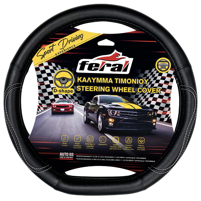 Κάλυμμα Τιμονιού Αυτοκινήτου Δερματίνη Power D Μαύρο Με Λευκή Ραφή Medium 38cm 1 Τεμάχιο