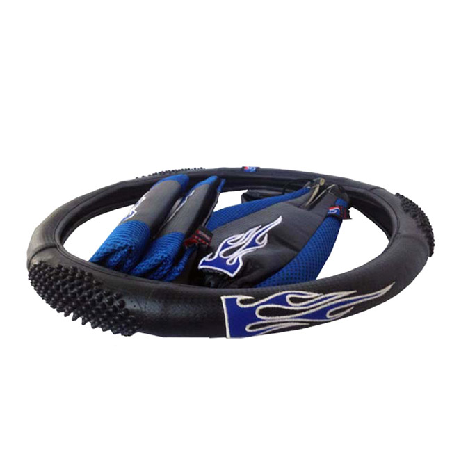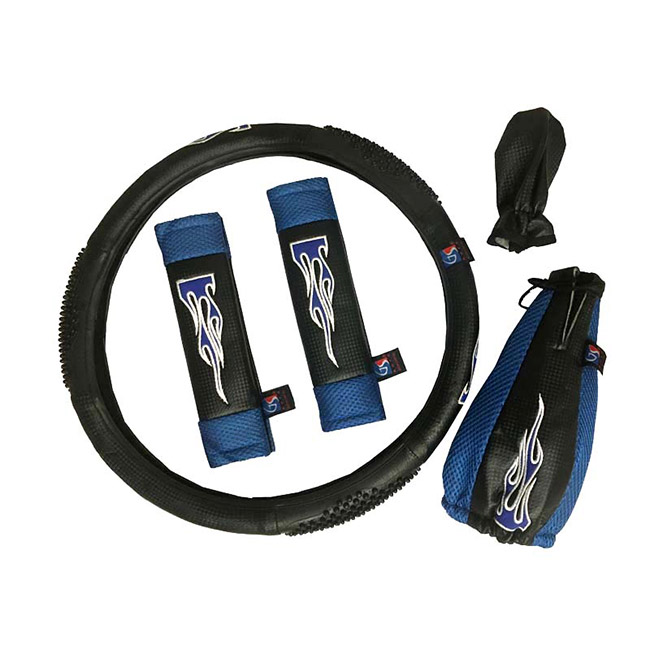 Κάλυμμα Τιμονιού Αυτοκινήτου Δερματίνη Σετ Flame Μπλε Medium 38cm 5 Τεμάχια