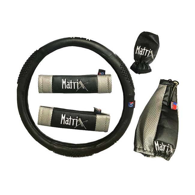 Κάλυμμα Τιμονιού Αυτοκινήτου Δερματίνη Σετ Matrix Γκρι Medium 38cm 5 Τεμάχια