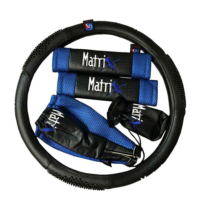Κάλυμμα Τιμονιού Αυτοκινήτου Δερματίνη Σετ Matrix Μπλε Medium 38cm 5 Τεμάχια
