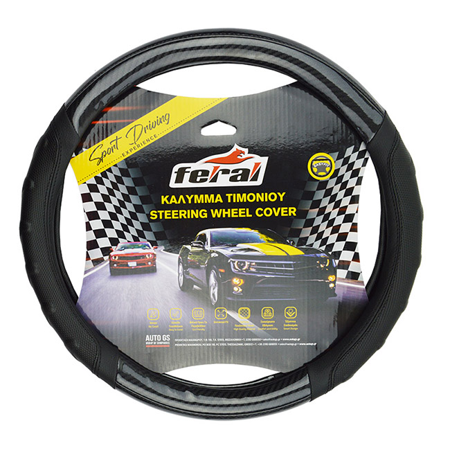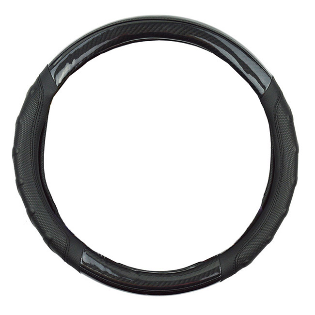 Κάλυμμα Τιμονιού Αυτοκινήτου Δερματίνη Speed Μαύρο-Carbon Με Μαύρη Ραφή Medium 38cm 1 Τεμάχιο