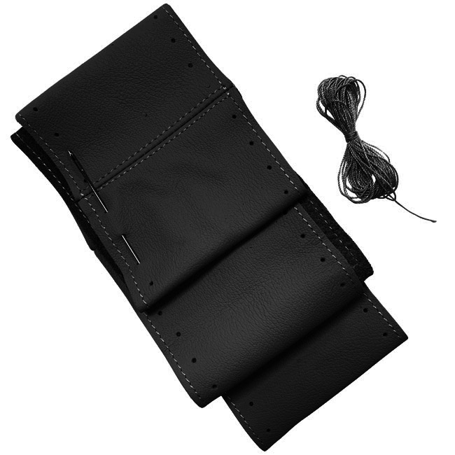 Κάλυμμα Τιμονιού Αυτοκινήτου Δερμάτινο Ραφτό Με Τρύπες Μαύρο Medium 38cm 1 Τεμάχιο