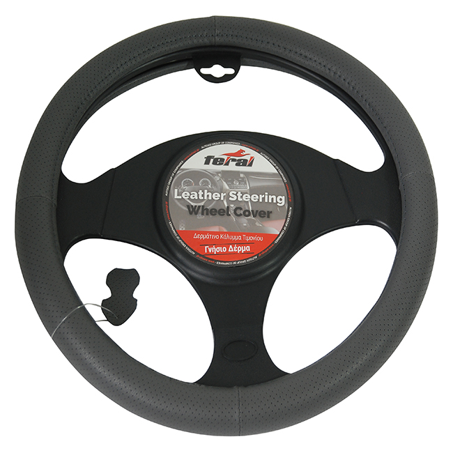 Κάλυμμα Τιμονιού Αυτοκινήτου Δερμάτινο Τρυπητό Γκρι Small 36cm 1 Τεμάχιο