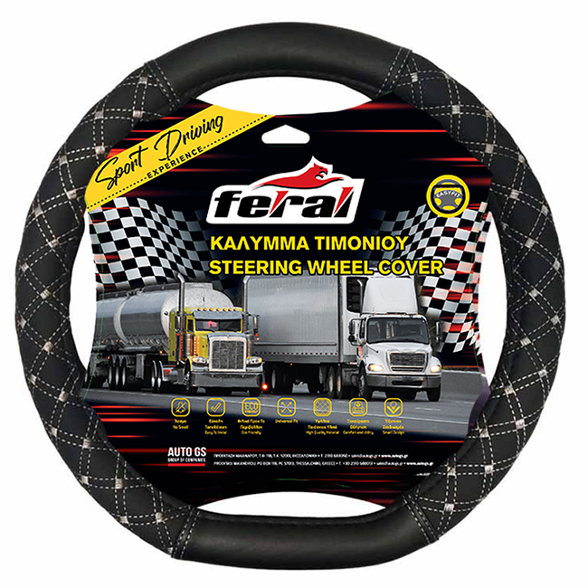 Κάλυμμα Τιμονιού Φορτηγού Δερματίνη Elegant Μαύρο Με Γκρι Ραφή ΧΧL 45cm 1 Τεμάχιο