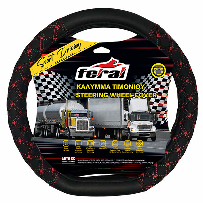 Κάλυμμα Τιμονιού Φορτηγού Δερματίνη Elegant Μαύρο Με Κόκκινη Ραφή ΧΧL 45cm 1 Τεμάχιο