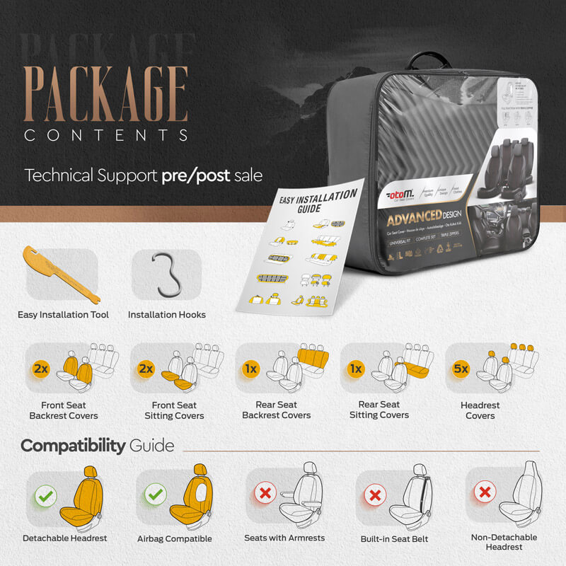 Καλύμματα Αυτοκινήτου Otom “Advanced Leather” Universal Δερματίνη / Λινό Ύφασμα Σετ Εμπρός / Πίσω Μαύρο ΑDV-104 11 Τεμαχίων