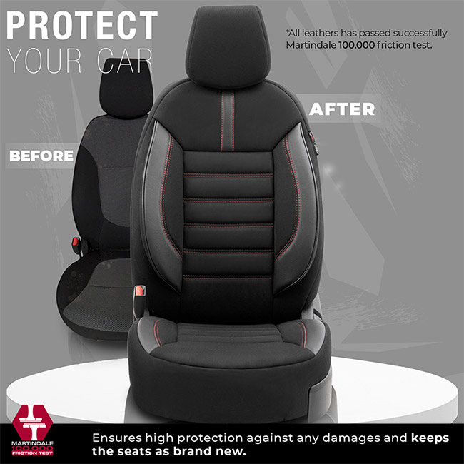 Καλύμματα Αυτοκινήτου Otom Limited Design Universal Jacquard / Lacost / Δερματίνη Σετ Εμπρός / Πίσω Μαύρο Με Κόκκινες Ραφές LMT-101 11 Τεμαχίων