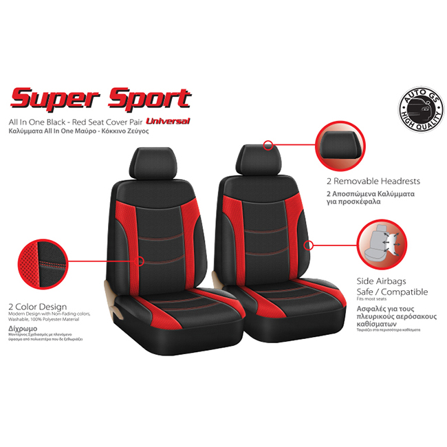 Καλύμματα Αυτοκινήτου Super Sport All In One Μαύρο-Κόκκινο Ζευγάρι