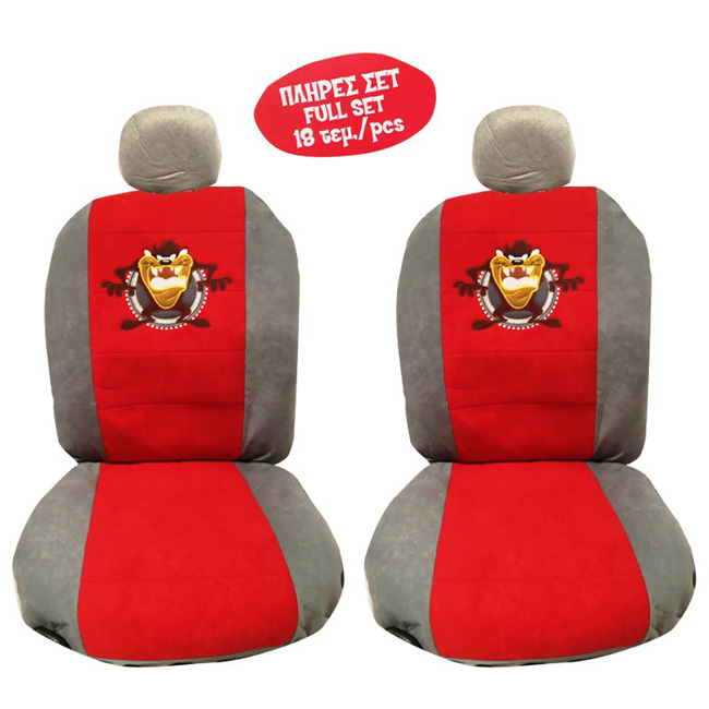 Καλύμματα Αυτοκινήτου Taz Ύφασμα Με 4 Φερμουάρ Γκρι-Κόκκινο Σετ 18 Τεμάχια