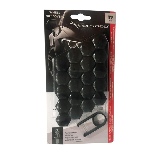 Καπάκια για μπουλόνια ή παξιμάδια με διάμετρο κεφαλής 17 mm του αυτοκινήτου σας σε μαύρο χρώμα και σχήμα εξαγώνου.