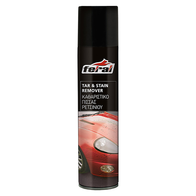 To καθαριστικό πίσσας, ρετσινιού και κηλίδων Feral είναι ένα προϊόν με μοναδική σύνθεση που αφαιρεί πίσσα, ρετσίνι, κηλίδες ασφάλτου, υπολείμματα λαδιού, κεριού, πετρελαίου και άλλους δύσκολους λεκέδες από βαμμένα και πλαστικά μέρη.