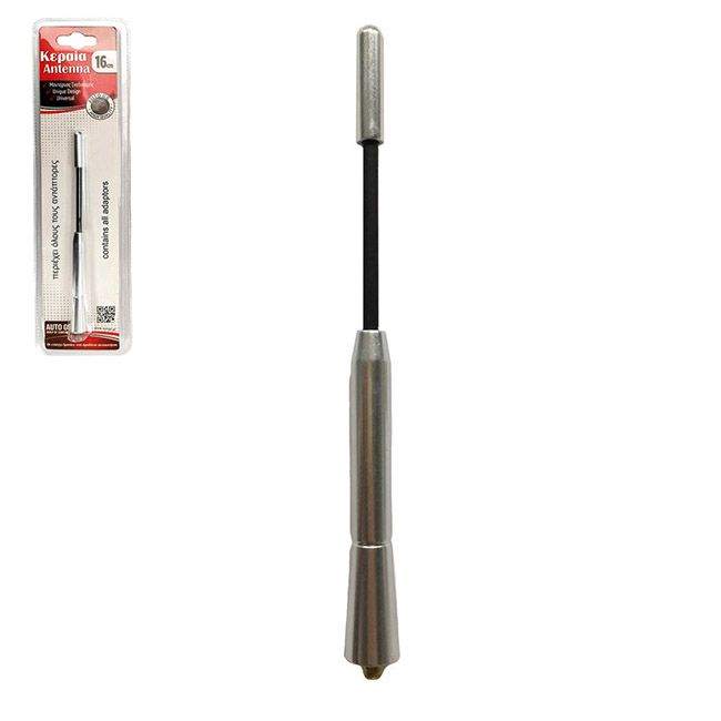 Κεραία Οροφής Αυτοκινήτου Αλουμινίου Ασημί Καμπυλωτή Με Αντάπτορες 16cm 1 Τεμάχιο