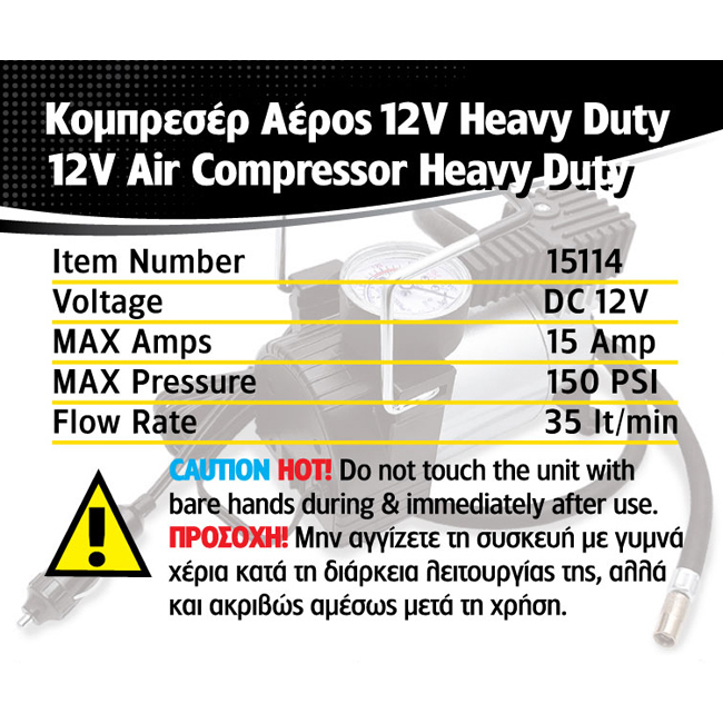 - 1 x Κομπρεσέρ αέρος με μανόμετρο