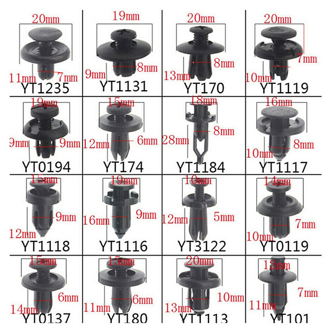 Περιλαμβάνει τα 16 πιο δημοφιλή μεγέθη, τα οποία είναι κατάλληλα για επένδυση πόρτας, φτερό, προφυλακτήρα, γρίλια, κάλυμμα κινητήρα και αντικατάσταση συγκράτησης ασπίδας.