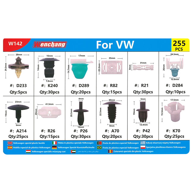 Κουμπώματα Ταπετσαρίας Αυτοκινήτου Για VW (12 Διαφορετικά Σχέδια) 255 Τεμάχια