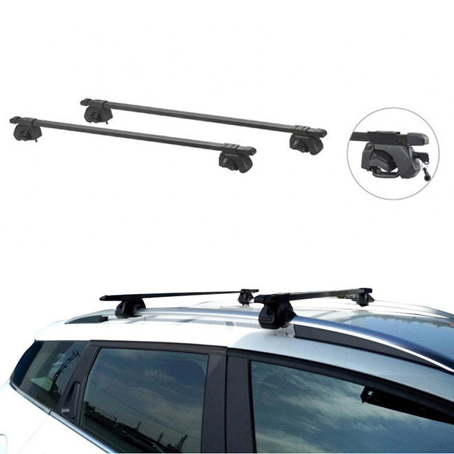 Μπάρες Οροφής Rackit Μεταλλικές 125cm Railing System Σετ Με Πόδια Και Κλειδαριά Μαύρες 2 Τεμάχια