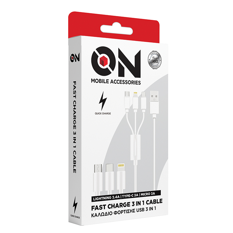 ON Mobile Accessories – Καλώδιο USB Φόρτισης 3 σε 1 (Lightning / Micro USB / Type-C)