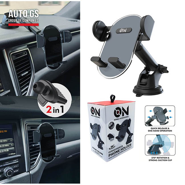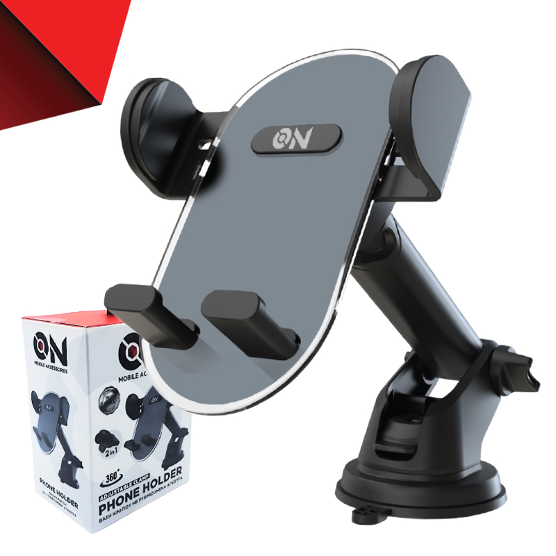 ON Mobile Accessories Βάση Κινητού Για Το Ταμπλό Και Τους Αεραγωγούς Με Βραχίωνα Και Ρυθμιζόμενα Άγκιστρα Μαύρη