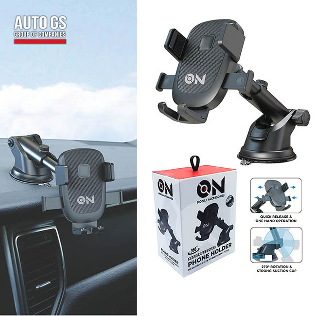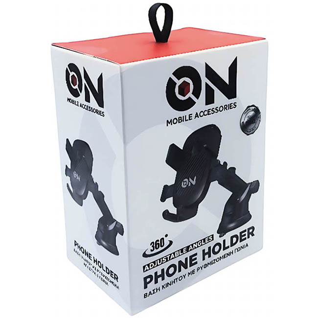 ON Mobile Accessories Βάση Κινητού Για Το Ταμπλό Με Άγκιστρα Και Ρυθμιζόμενη Γωνία Μαύρη