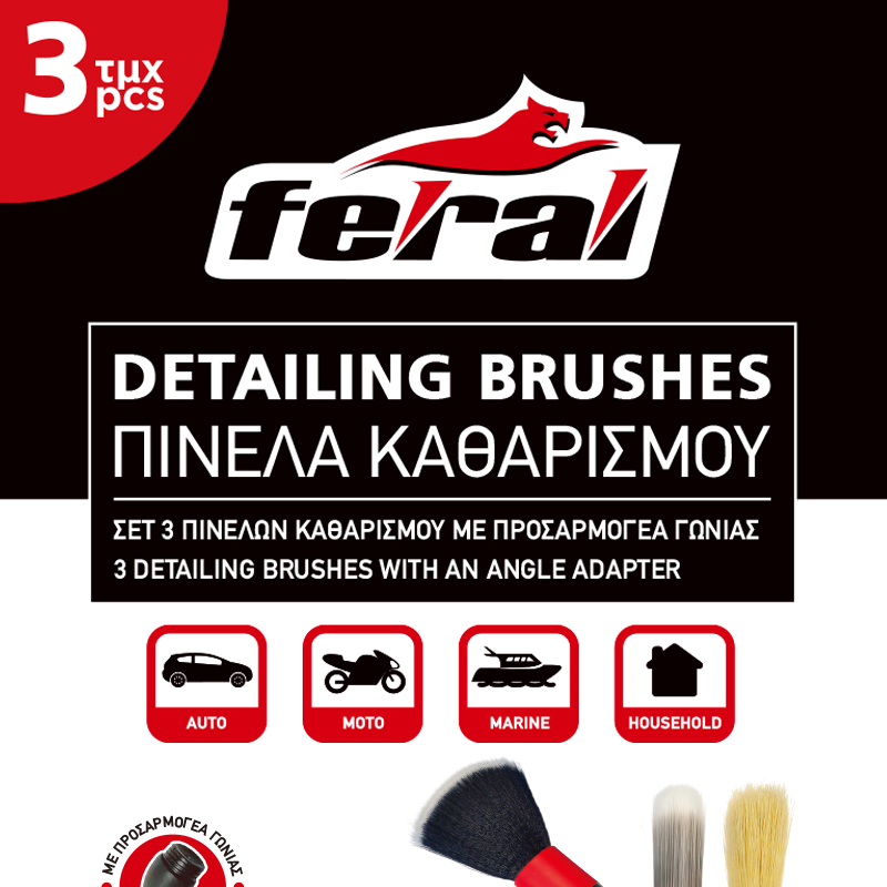 Με αυτόσετ 3 Πινέλων Καθαρισμού της Feral, ο λεπτομερής καθαρισμός γίνεται εύκολος, γρήγορος και αποτελεσματικός, ακόμα και στα πιο δύσκολα σημεία. Ο γωνιακός προσαρμογέας προσφέρει εργονομία και έλεγχο που κάνουν τη διαφορά.