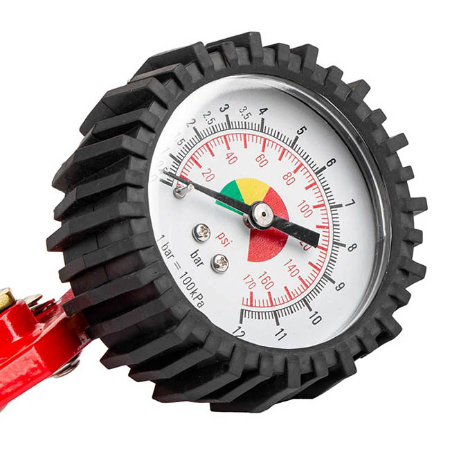 Το πιστόλι είναι εξοπλισμένο με μηχανικό μεγάλο μανόμετρο, ώστε το αποτέλεσμα της μέτρησης να είναι πολύ καθαρό.