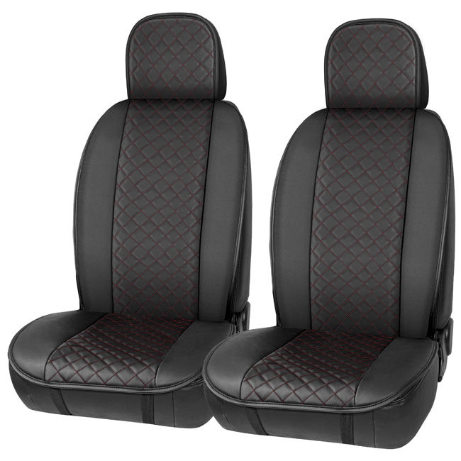 Πλατοκαθίσματα Αυτοκινήτου Elegance Δερματίνη Μαύρη Με Κόκκινη Ραφή 2 Τεμάχια