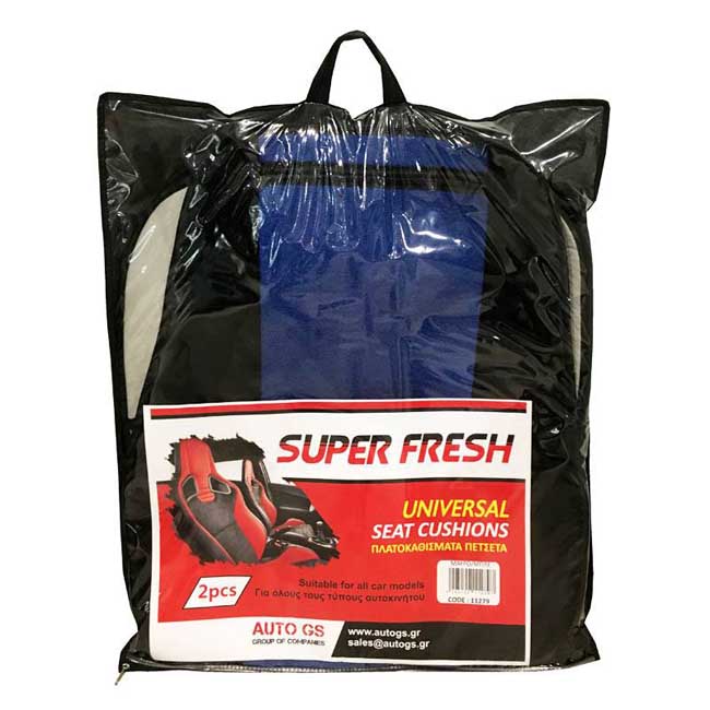 Πλατοκαθίσματα Αυτοκινήτου Πετσετέ Super Fresh Μαύρο-Μπλε 2 Τεμάχια